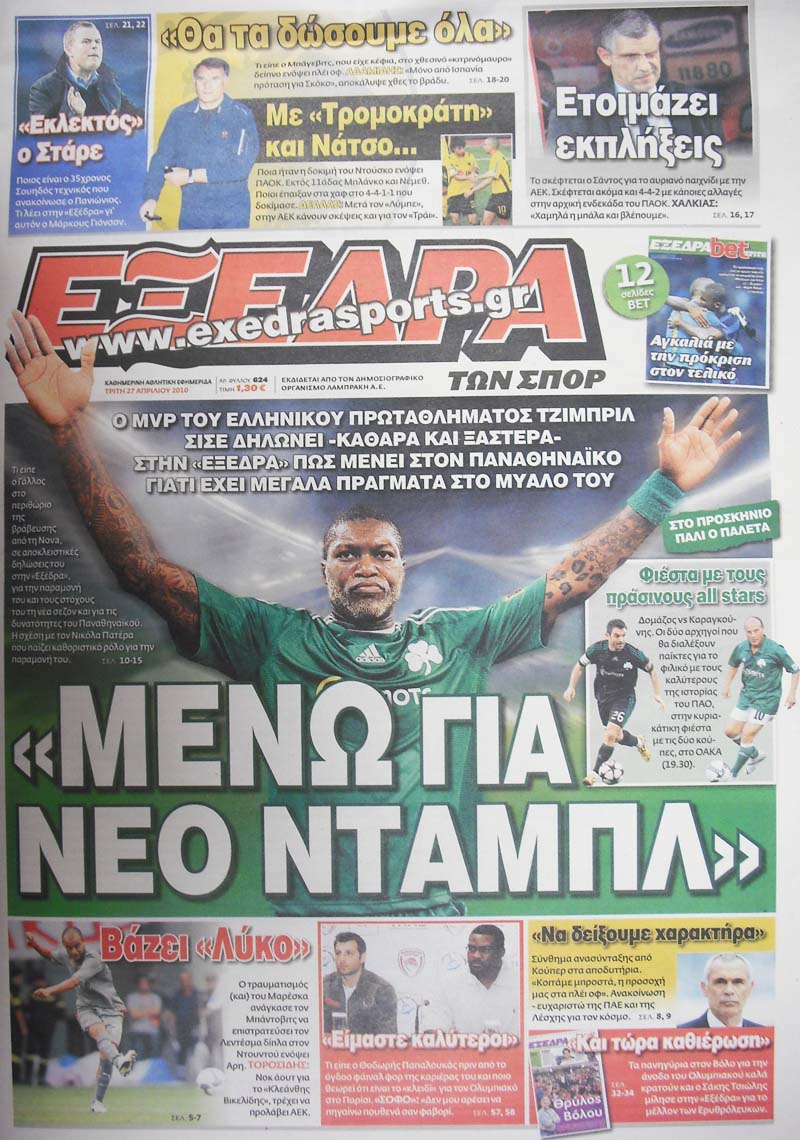 O Τζιμπρίλ Σισέ με δηλώσεις του στην εφημερίδα Εξέδρα, εξέφρασε την επιθυμία του να παραμείνει στον Παναθηναϊκό. Μάλιστα τονίζει, πως θέλει να επαναλάβει τη φετινή επιτυχημένη χρόνια, κάνοντας και του χρόνου το νταμπλ:
